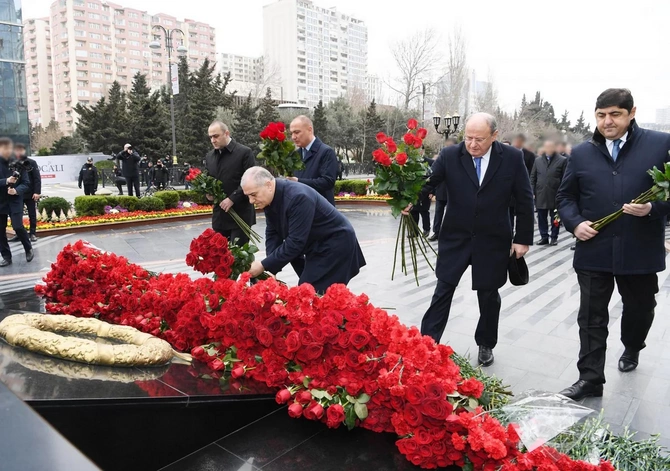 Bildirilib ki, abidənin önünə gül dəstələri qoyulmuş, soyqırımı zamanı həlak olanların əziz xatirəsi dərin ehtiramla yad edilmişdir.