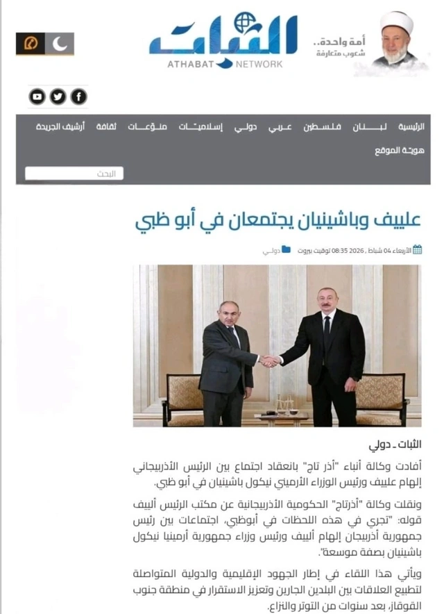 Mərakeşdə fəaliyyət göstərən "A5r5br" və ərəbdilli "Mvlana" portalı isə görüşün Cənubi Qafqazda regional sabitliyin möhkəmləndirilməsi və uzun illər davam edən gərginliyin aradan qaldırılması istiqamətində beynəlxalq səylərin tərkib hissəsi olduğunu qeyd edib. Ərəb mediası vurğulayır ki, Əbu-Dabidə baş tutan təmaslar Azərbaycan–Ermənistan dialoqunun davam etdirilməsinə və etimad quruculuğu tədbirlərinin genişləndirilməsinə xidmət edir.