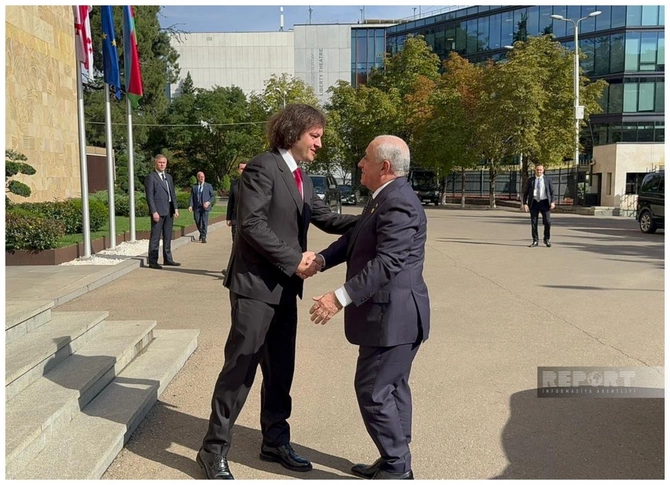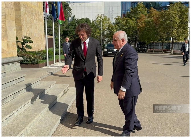 Onu Gürcüstanın Baş naziri İrakli Kobaxidze qarşılayıb.