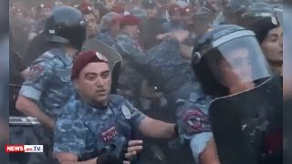 Ermənistan polisi aksiyaçılara qarşı səs qumbarası tətbiq etdi - VİDEO