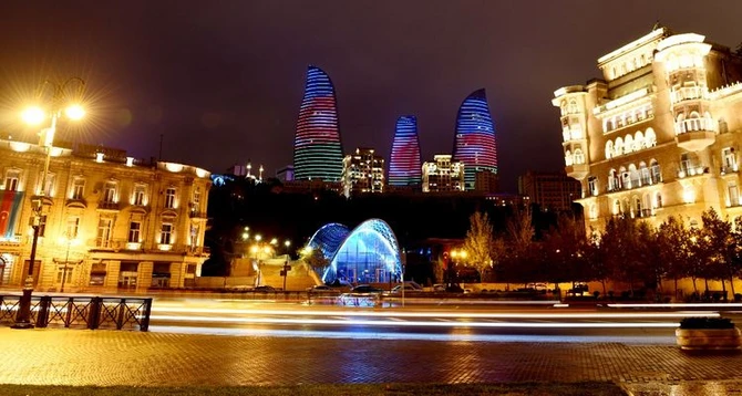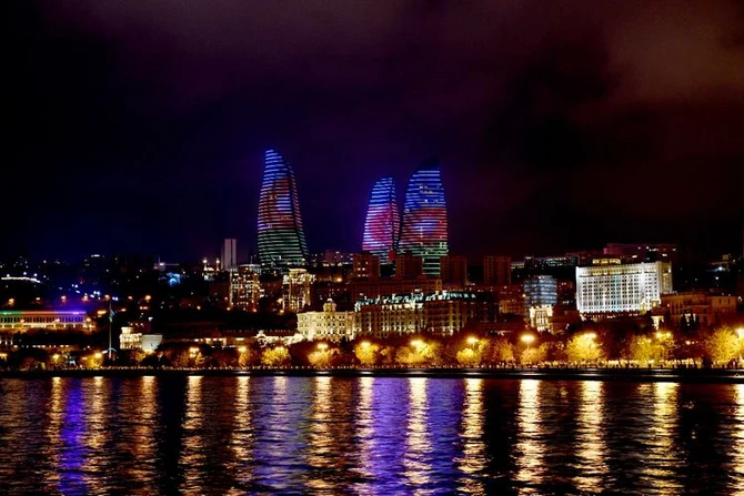 Heydər Əliyev Mərkəzi, "Alov qüllələri" və Bakı Olimpiya Stadionu Azərbaycan bayrağı ilə işıqlandırılıb - FOTO