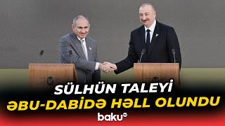 "Çünki Ermənistan ilə Azərbaycan arasında sonuncu danışıqlar raundu ötən ilin iyul ayında, tarixi Vaşinqton Sammitindən cəmi bir ay əvvəl məhz burada baş tutmuşdur. Əziz qardaşımız Şeyx Məhəmmədin dəstəyi ilə sülhün bərqərar olunması üçün son razılığa burada gəldik və həmin razılıq daha sonra Vaşinqtonda rəsmiləşdirilmişdir.