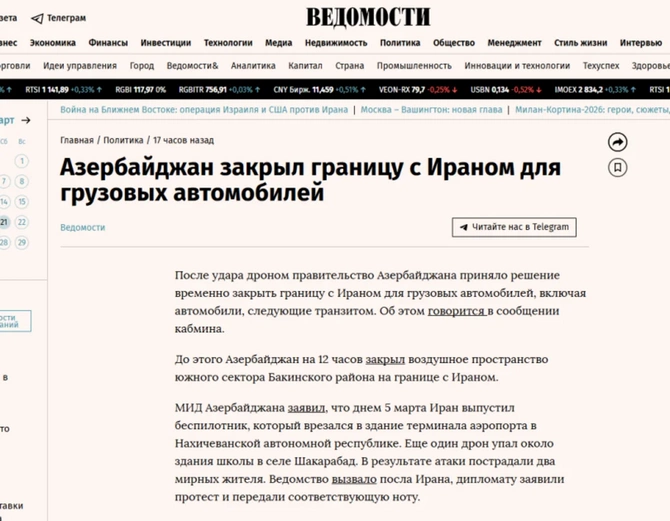 "Arbatmedia.kz" nəşri isə bildirir ki, Azərbaycan Prezidenti İran tərəfindən izahat tələb edib. Məqalədə o da qeyd olunur ki, dövlət başçısı Azərbaycanın İrana qarşı hər hansı əməliyyatda iştirakını istisna edib.