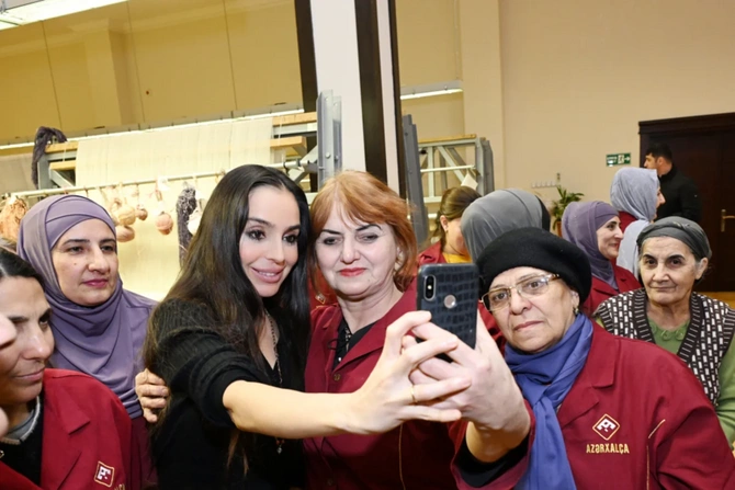 Leyla Əliyeva emalatxananın fəaliyyəti ilə tanış olub, toxucularla söhbət edib, xalçalara son ilmələri atdıqdan sonra Şuşa məscidi üçün hazırlanan xalçaların kəsim mərasimində iştirak edib.