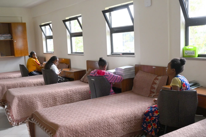 Efiopiyanın birinci xanımı Zinaş Tayaçevin təşəbbüsü və himayəsi ilə inşa olunan məktəb ölkənin bütün bölgələrindən seçilmiş 9-cu sinifdən 12-ci sinfə qədər gözdən əlilliyi olan və görmə məhdudiyyətli 300-dən çox şagirdə xidmət göstərir. Məktəb milli tədris proqramını şagirdlərinin ehtiyaclarına uyğunlaşdıraraq Brayl əlifbasından, audioresurslar və kompüter ekran oxuyucusu texnologiyasından istifadə edir. Əsas akademik fənlərlə yanaşı, şagirdlər Brayl əlifbasını, orientasiya və hərəkətlilik, həyat bacarıqları və musiqi, əl işləri, kompüter istifadəsi üzrə təlimlər keçirlər. Akademik öyrənməni praktiki bacarıqlarla birləşdirərək, Berhan Gözdən Əlillər üçün İnternat Məktəbi şagirdləri ali təhsildə uğur qazanmağa və cəmiyyətdə müstəqil, məhsuldar həyata hazırlaşmağa imkan verir.
