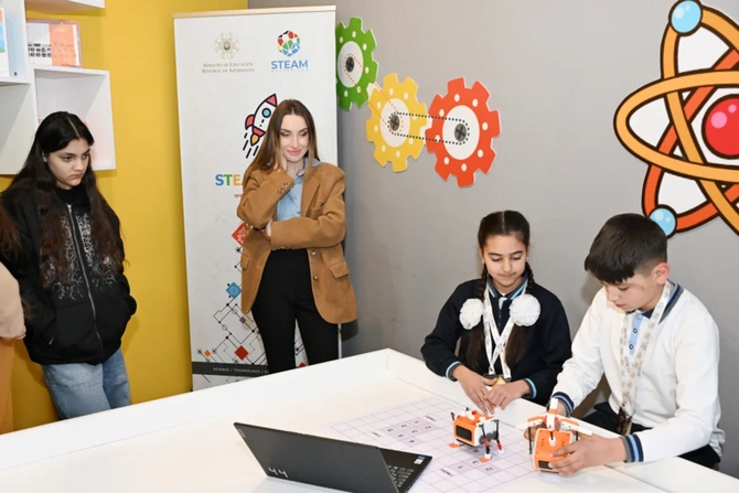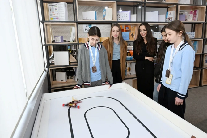 Daha sonra Quba STEAM mərkəzi ziyarət olunub. Mərkəzlə tanışlıq zamanı xatırladılıb ki, Birinci vitse-prezident Mehriban Əliyevanın təşəbbüsü ilə Azərbaycan məktəblərində 2019-cu ildən etibarən STEAM (Science, Technology, Engineering, Art, Mathematics) layihəsinin geniş tətbiqinə başlanılıb. Qeyd olunub ki, STEAM mərkəzi Qubada 2021-ci ildən fəaliyyət göstərir və bütün yaş qrupları üçün nəzərdə tutulub. Leyla Əliyeva və Alyona Əliyeva mərkəzdə yaradılan şəraitlə yaxından tanış olub, şagirdlərlə səmimi söhbət aparıb, onların burada əldə etdikləri bilik və bacarıqların praktiki tətbiqi ilə maraqlanıblar.