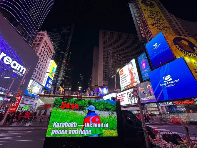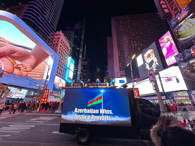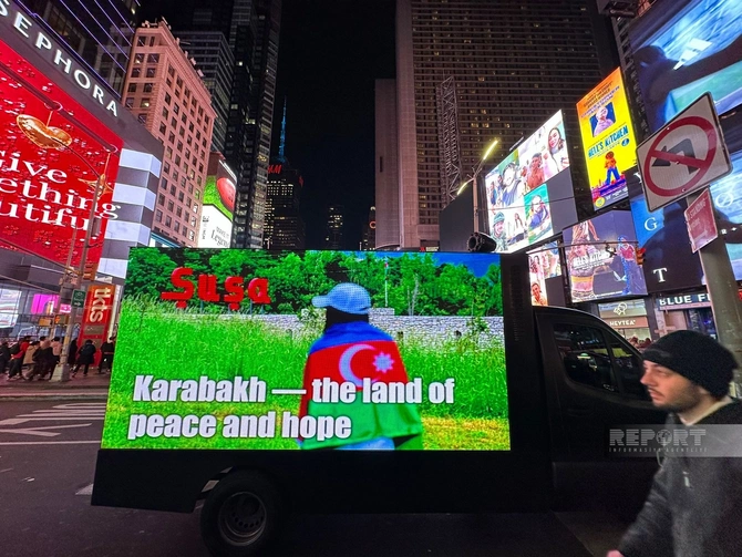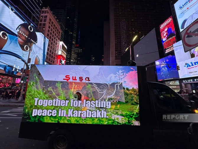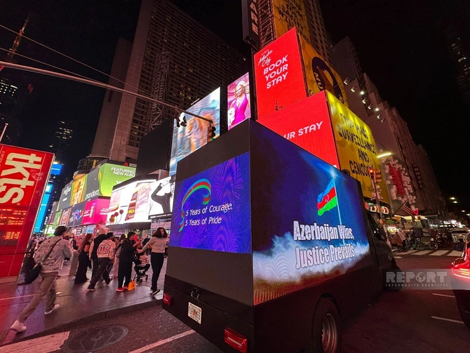 Məlumatlandırma aksiyasında üzərində Azərbaycan həqiqətlərini əks etdirən LED ekranlı avtomobil hər gün minlərlə turistin ziyarət etdiyi, Nyu-Yorkun simvolu hesab olunan dünyaca məşhur "Times" meydanında hərəkət edib.
