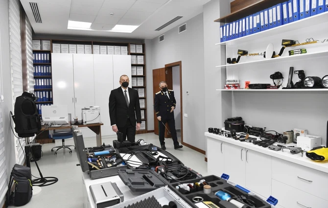 Dövlətimizin başçısına səyyar kriminalistik laboratoriyaların quraşdırıldığı avtomobillər barədə də məlumat verildi. Bildirildi ki, avtomobillərdə quraşdırılmış batareyaların köməyi ilə mühərriklər işə salınmadan 1,5-2 saat ərzində avtonom rejimdə hadisə yerini, eləcə də istintaq hərəkəti aparılan ərazini işıqlandırmaq mümkündür. Müasir texnika və avadanlıqla təchiz edilən bu cür avtomobillər MDB məkanında yalnız Azərbaycandadır.