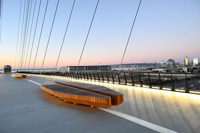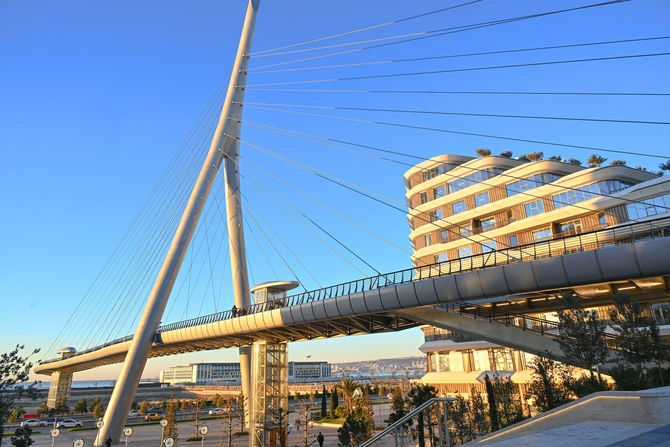 Uzunluğu 234, eni isə 7-13 metr arasında dəyişən körpü "Bakı Ağ Şəhər"də piyadaların rahatlığının təmin edilməsində mühüm rol oynayacaq. Piyadalar onun vasitəsilə 8 Noyabr prospektində yerləşən Zaman meydanına, Babək prospektindən Mərkəzi Park rayonuna, Fəvvarələr meydanından isə Ağ Şəhər Bulvarına rahat gedə biləcəklər. Körpüdə quraşdırılan eskalator və liftlər metronun yeni "Ağ Şəhər" stansiyasına keçidi təmin edəcək.