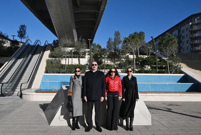 Dövlətimizin başçısı, birinci xanım və qızları "Bakı Ağ Şəhər"də Zaman meydanı və buradakı piyada körpüsünün açılışında da iştirak etdilər.