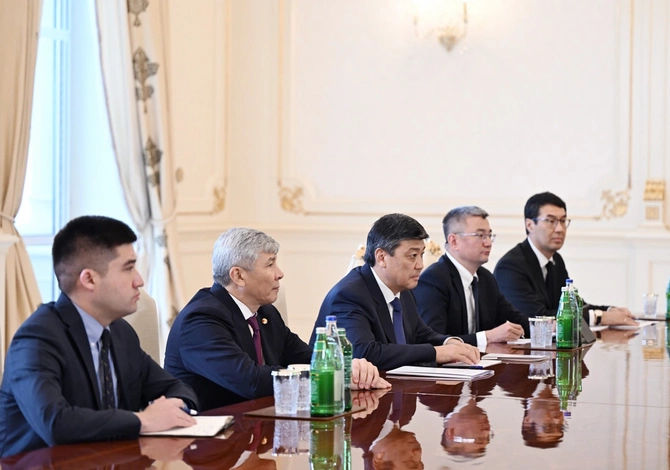 Qəbula görə nümayəndə heyətinin adından minnətdarlıq edən Bakıt Torobayev, ilk növbədə, Qırğız Respublikasının Prezidenti Sadır Japarovun salamlarını dövlətimizin başçısına çatdırdı.