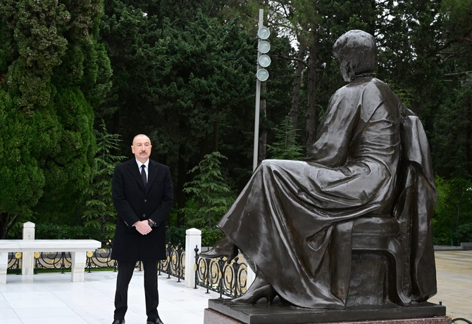 Prezident İlham Əliyev Ulu Öndərin məzarı önünə əklil qoydu.