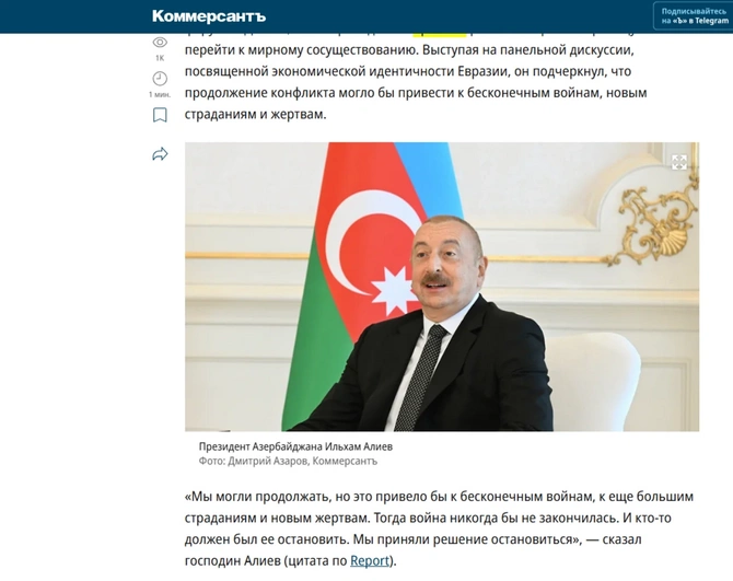 Qeyd edək ki, "interfax.ru", "Kommersant", "lenta.ru", "izvestiya.ru" və "vedomosti.ru" saytları məqalələrini yayıblar.