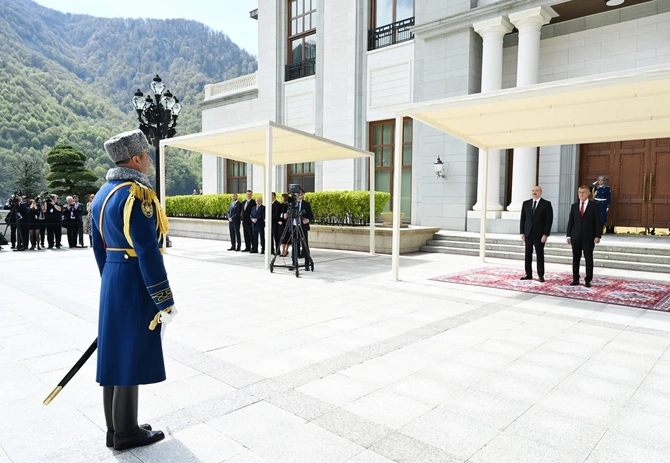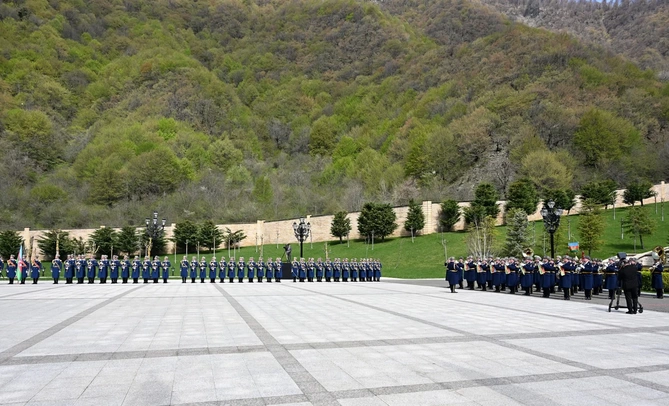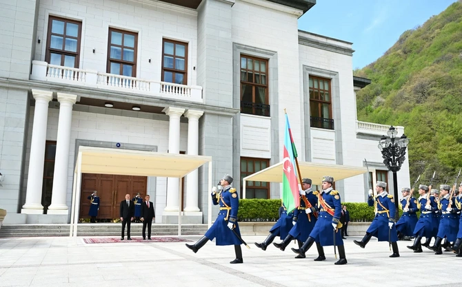 Fəxri qarovul dəstəsi hərbi marşın sədaları altında Azərbaycan Prezidenti İlham Əliyevin və Çexiyanın Baş naziri Andrey Babişin qarşısından keçdi.