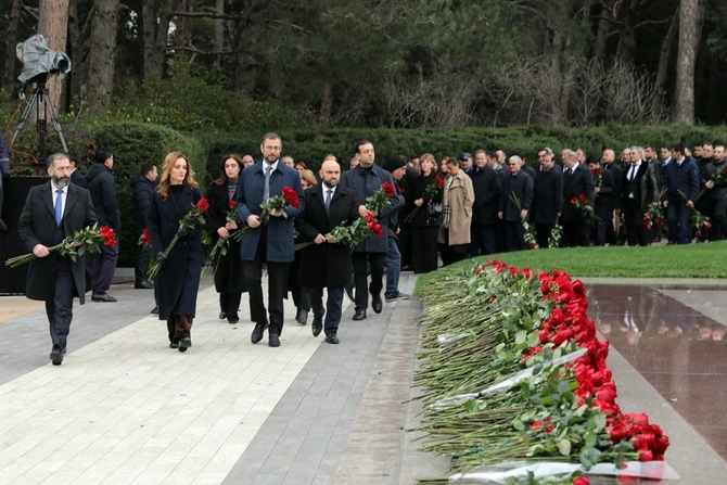 Məlumata görə, dahi şəxsiyyətin əziz xatirəsini dərin hörmət və ehtiramla anaraq məzarı önünə gül dəstələri qoyulub. Görkəmli oftalmoloq-alim, akademik Zərifə xanım Əliyevanın xatirəsi yad edilib, məzarı üzərinə gül dəstələri düzülüb.