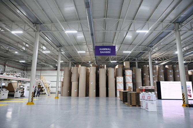 Azərbaycan Prezidenti İlham Əliyev yanvarın 27-də Sumqayıt Sənaye Parkında "Bakı Karton və Qutu Fabriki" MMC-nin karton və qutu taralarının istehsalı müəssisəsinin açılışında iştirak edib.