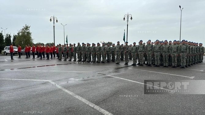 Sumqayıtda Zəfər Günü münasibətilə hərbçilərin yürüşü başlayıb
