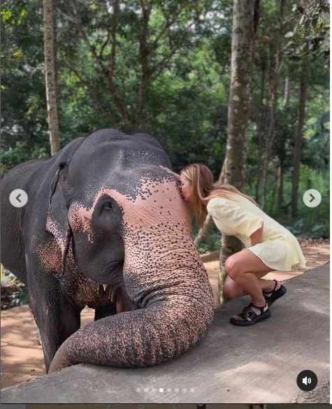 İvana Sertin Şri-Lanka istirahəti - Fil ilə əyləncəli görüntüləri - FOTO/VİDEO