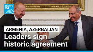 Fransanın France 24 kanalı analitik Aleks Melikişvilinin şərhi ilə "Ermənistan, Azərbaycan: Liderlər onilliklər davam edən münaqişədən sonra tarixi saziş imzalayıblar" başlığı altında ABŞ prezidenti Donald Trampın Ağ Evdə çağırdığı sülh sammitində çoxdankı düşmənlər olan Ermənistan və Azərbaycan arasında imzalanan tarixi razılaşma haqqında danışılıb. Təhlilçi vasitəsilə burada Ermənistan Konstitusiyasının dəyişdirilməsindən, Paşinyan əleyhinə olan güclərdən, Bakıda həbsdə olan erməni kriminallarla bağlı fərqli yanaşmalardan da danışılıb (