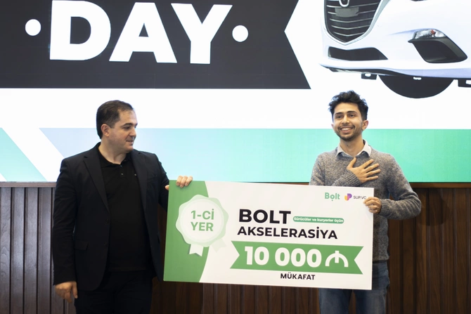 Bakı, 2025-ci il - Bolt Azərbaycan və SUP VC əməkdaşlığı ilə həyata keçirilən "Bolt Accelerator" proqramının final mərhələsi olan Demo Day – Final Təqdimat Günü uğurla keçirilib. Radisson Hotel Baku-da baş tutan tədbirdə finalçı komandalar öz biznes ideyalarını münsiflər heyəti və geniş auditoriya qarşısında təqdim ediblər.
