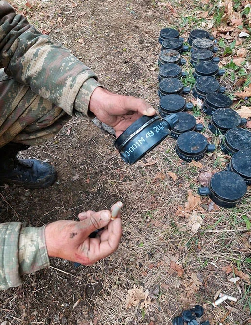 В ведомстве отметили, что в ходе поисковых работ, проведённых инженерно-саперными подразделениями азербайджанской армии, на этой территории было обнаружено несколько противотанковых и большое количество противопехотных мин, произведенных в Армении в 2021 году.