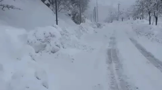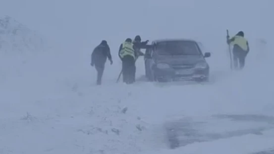 В Гобустанском районе проезжая часть автодороги Текле - Сюнду - Хилмилли засыпана снегом, что затрудняет движение транспорта,