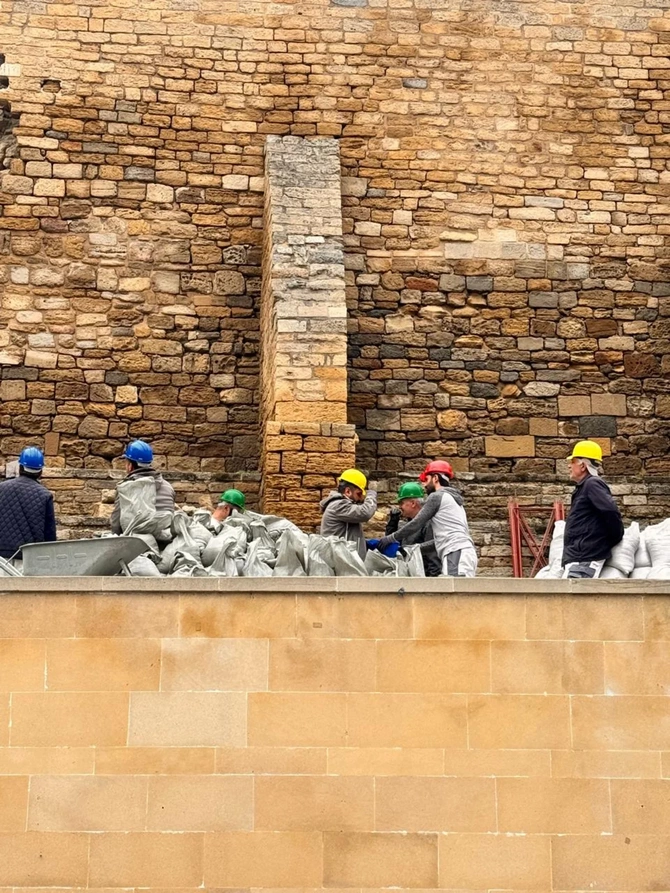 Управление "Ичеришехер" приступило к восстановлению поврежденного участка крепостной стены