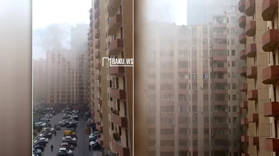 Согласно поступившим данным, по адресу проспект Ходжалы, 29, из одной из квартир поднимается густой чёрный дым.