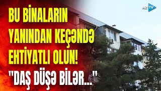 Подобные случаи зафиксированы в Ясамальском районе на проспектах Иншаатчылар и Метбуат. Жители этих домов с беспокойством сообщают, что с неотремонтированных сторон зданий регулярно осыпаются камни, что создает угрозу безопасности прохожих.