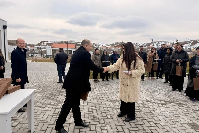 Переселившимся в село Хоровлу Джебраильского района 20 семьям вручены ключи от квартир.