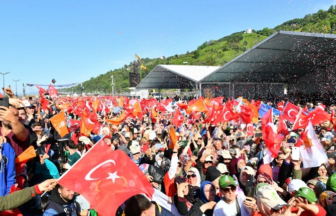 Дорогие друзья, дорогие братья. Я впервые нахожусь в Ризе. Много слышал об этом крае. Глядя из иллюминатора самолета на эту красивую панораму и любуясь ею уже здесь, я сказал моему дорогому брату, что это место подобно раю. Прекрасная, живописная природа Ризе, Артвина, Черноморского региона – большое достояние, но самым большим достоянием являются люди этого региона – мужественные люди, патриоты, обладающие боевым духом, стоящие на страже Турецкой Республики. Слава им!