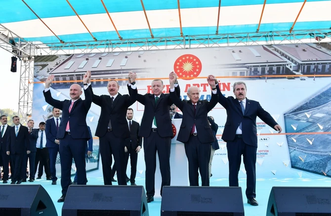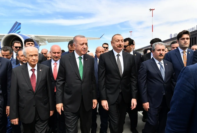 -Президент Азербайджана, мой брат, уважаемый Алиев. Председатель партии Националистического движения уважаемый Девлет Бахчели, председатель партии Великого единства уважаемый Мустафа Дестиджи.