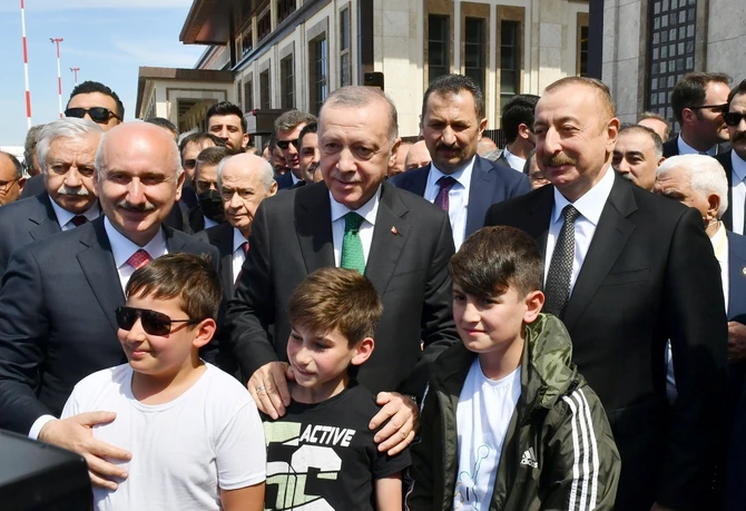 Для меня большое счастье находиться сегодня вместе с вами. Участие сегодня Президента Азербайджана в этой прекрасной церемонии - очередное проявление турецко-азербайджанского единства. Мы всегда вместе – и в радостные, хорошие, и в тяжелые дни. Вторая Карабахская война еще раз продемонстрировала это всему миру. С первых часов и до последнего дня войны мой брат находился рядом с нами, братский турецкий народ был рядом с нами.