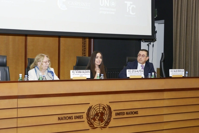 В тот же день в штаб-квартире ООН в Женеве при совместной организации Постоянного представительства Азербайджанской Республики при отделении ООН и других международных организациях в Женеве, научной сети Caspisnet и Секретариата Тегеранской конвенции состоялись панельные дискуссии высокого уровня на тему "Усиление управления окружающей средой и международного сотрудничества для защиты Каспийского моря".