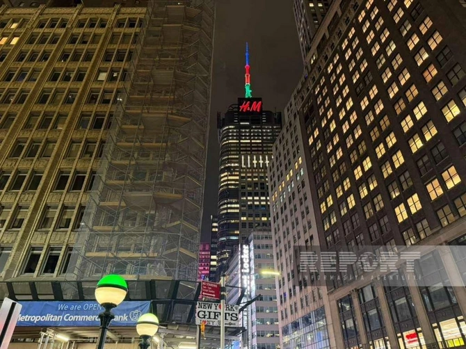 В связи с 8 Ноября - Днем Победы и 9 Ноября - Днем Государственного флага на Всемирный торговый центр и самое высокое здание на площади Таймс-сквер в Нью-Йорке был проецирован флаг Азербайджана.