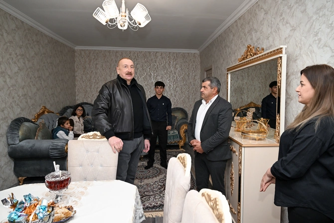 Затем глава государства посетил переселившуюся в село семью Анара Рустамова, ознакомился с условиями, созданными в новом доме.