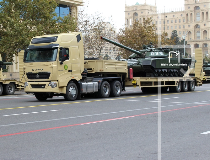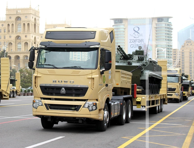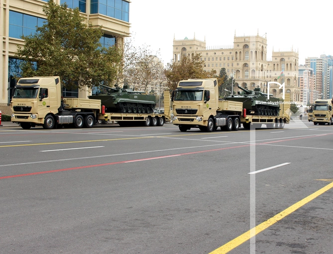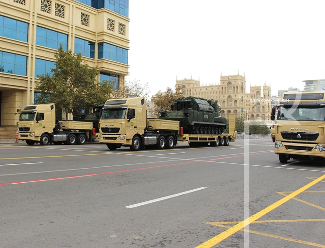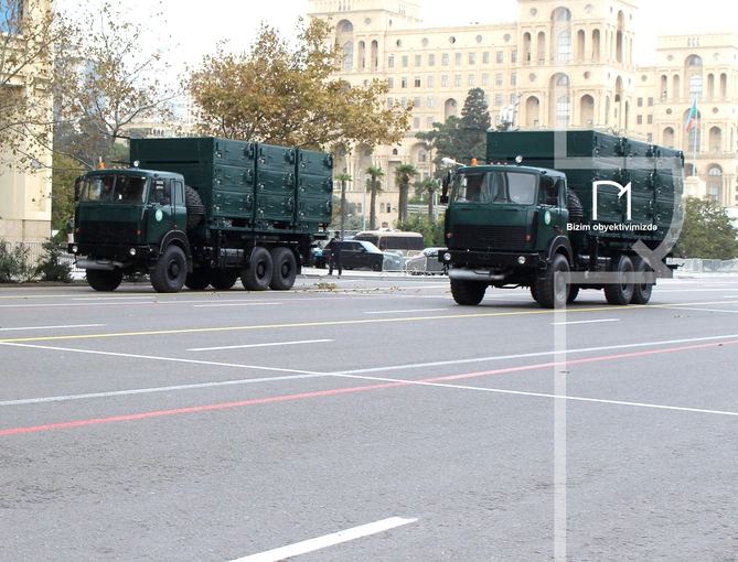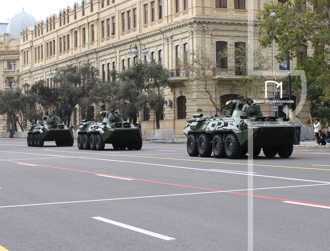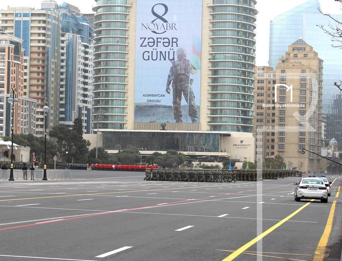В Баку проходит победный марш военнослужащих в сопровождении военного оркестра, посвященный 8 Ноября – Дню Победы.