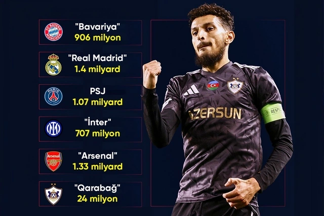 Как передает Oxu.Az, футбольный клуб "Карабах", чей состав оценивается всего в 24 млн евро, расположился в одном ряду с командами, стоимость которых исчисляется миллиардами евро.