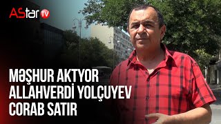 Aktyor Allahverdi Yolçuyev şəhərin mərkəzi küçələrində insanlara, mağazalara corab satır.