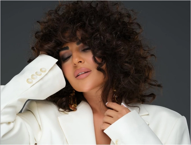 İfaçı fotosessiyası üçün tərzini dəyişib. Gülay saçlarını qarışıq buruq etdirib.