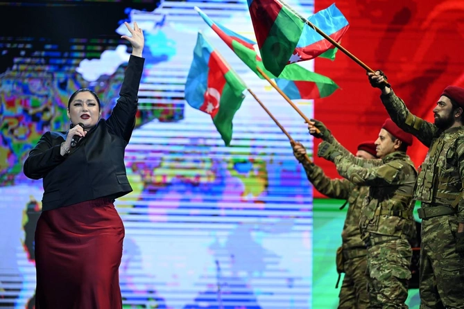 İfaçı uzun illər əvvəl ona uğur gətirən "Qələbənin yolları" nəğməsi ilə bayrama ayrıca coşqu qatıb.