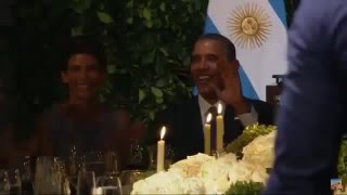 BAKU.WS məlumat verir ki, Argentinaya səfər edən prezident rəsmi görüşdən sonra ziyafət gecəsinə qatılıb. Ziyafət gecəsində rəqqasə Obamanı tanqo rəqsinə dəvət edib. Argentina prezidenti Makri Maurisionun təkidindən sonra Obama peşəkar rəqqasə ilə tanqo oynayıb. Obamanın rəqsi ziyafətdə iştirak edən qonaqlar tərəfindən maraqla qarşılanıb.