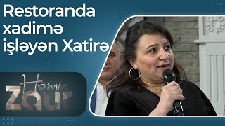 BAKU.WS xəbər verir ki, aparıcı Zaur Kamal Xatirə xanımı verilişinə dəvət edib. Əslən Tovuz rayonunun Azaflı kəndindən olan qadın hazırda Sumqayıtda yaşadığını bildirib. O, xadimə olaraq çalışdığı restoranın əməkdaşının təkidi ilə mikrofon arxasına keçərək bu mahnını ifa etdiyini deyib.