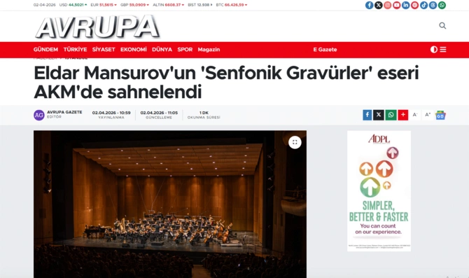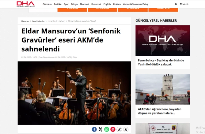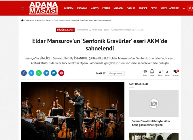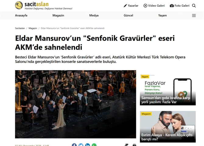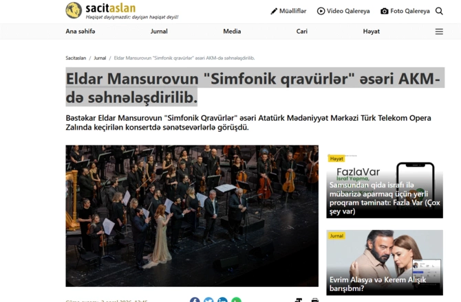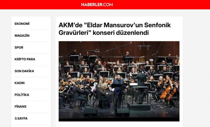 Eldar Mansurovun əsərinin Atatürk Mədəniyyət Mərkəzində səslənməsi Türkiyə mətbauatında manşet olub.