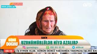 Azərbaycan uzunömürlülər diyarıdır. Sözün hər bir mənasında bizdə insanın özü qədər insani dəyərlər də qədim tarixə malikdir. O dəyərlər ki, müasir dünya üçün örnək qismində qəbul edilir. Lakin rəqəmlər də son 5 ildə 100 yaşlıların sayının azaldığını göstərir. Uzunömürlülər arasında "cavanlaşma" prosesinin getməsi müxtəlif fikirlərlə əsaslandırılır. Kimisi sağlam yaşam tərzinin dəyişdiyini, kimisi isə genetikanın rol oynadığını düşünür.ARB TV-nin “Günə doğru” proqramı mövzuyla bağlı maraqlı süjet hazırlayıb.Kamal Kələntərli – 98 yaşlı sakin: “Atamın əmisi Əhəd bəy Kələntərli 114 yaşında qədər yaşamışdır. İnsanın şəxsən özündən asılıdır. Nələri valideyin görməlidir övladı üçün: Vaxtında yatmağını, vaxtında durmağını, torpaqda bəslənən təbii qidalar olmalıdır. O vaxtı yaxşı pendir gətirərdilər, bunlar insanın ömrünün uzun olmasına bir dayağdır. Mən inana bilmirəm ki, 10-15 ildir 20 ildir bəlkədə keçi südü 1 nəfər uşağa verilsin”.Azərbaycanda uzunömürlülərin ən çox yaşadığı bölgə cənub zonasıdır. Lakin burda da yaşı 100-ü keçənlərin sayı nəzərəçarpacaq dərəcədə azalır.Şabikə Axundova: “114 yaşım var həyətə düşə bilmirəm evdə yavaş-yavaş gəzirəm oturam–dururam . Nəsildə uzunömürlü var? Bacım var idi, qardaşım var idi” .Sevic Hüseynova – Azərbaycan Milli Elimlər Akademiyasinin Qarayev adına Fiziologiya instutunun aparıcı elmi işçisi dasent biologiya elmlər üzrə fəlsəfə doktoru: “Əvvəlki illərə nisbətən uzunömürlülərin sayı azalıb . Demoqrafik nəticələrə görə, üzunömürlülərin 94-95-96 yaşında olanların sayı artıb . Ölkə üzrə 10 minə qədər var 100-dən çox. Amma o rəqəmlər dəqiqləşdirilməmiş, derifikasiya olunmamış rəqəmlərdir. 2 il bundan qabaq əgər Lənkəranda 140 yaxın uzunömürlü qeydə alırdıqsa bu illəri onların sayı 104 catıb”.Ənvər Rüstəmov – Terapevt : “Qida rejiminə əməl etməlidir, yuxu rejiminə əməl etməlidir, sonra stersdən özünü qorumalıdır. Müxtəlif yoluxucu xəstəliklərdən özün qorumalıdır. Siqaret cəkməkdən imtina etməldir, yağlı qida məhsullarını qəbul etməkdən imtina etməlidir. İnsan öz resurslarını tam xərcləyə bilərsə, əlbətdə 120-150 il yaşamaq mümkündür”.Azərbaycanda uzunömürlü insanların dəqiq sayı bəlli deyil. Ancaq onların əksəriyyəti qadınlardır. Ekspertlər qadınların ömürlərinin uzun olmasını onların fizioloji quruluşları, emosional, gərgin vəziyyətdə çox olmaması ilə izah edir.BAKU.WS