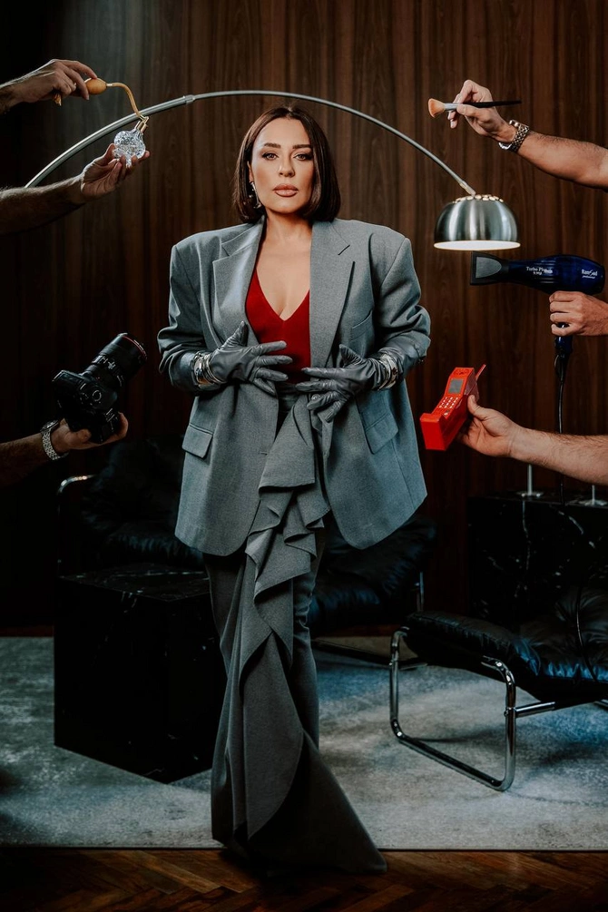 BAKU.WS xəbər verir ki, sənətçi bu dəfə boz rəngdə klassik kostyumda kamera qarşısına keçib.