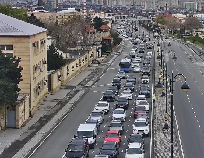 Bakının bir sıra yollarında tıxac yaranıb.