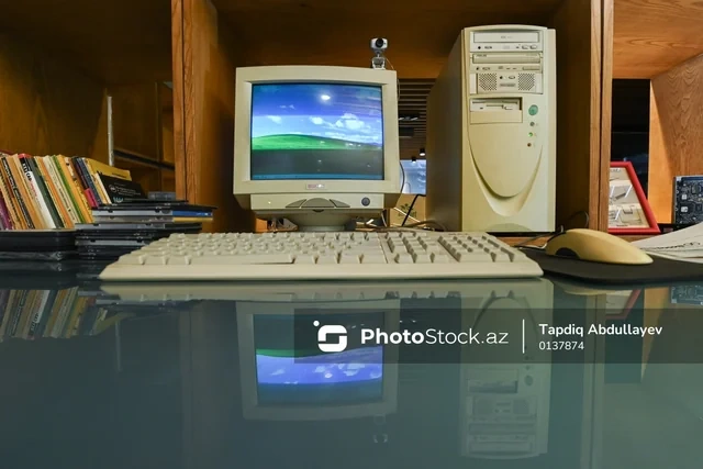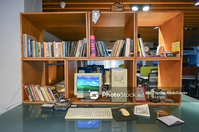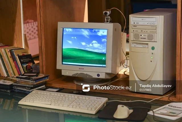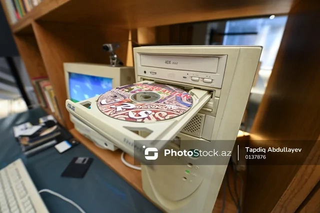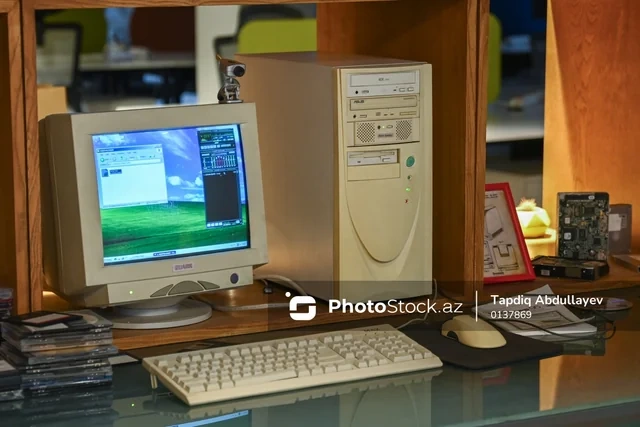 BAKU.WS PhotoStock.az-a istinadən xəbər verir ki, sərgidə əvvəlcə bir nəslin texnologiya ilə ilk təmasını yaddaşlara həkk etmiş "Windows XP" əməliyyat sistemi ilə işləyən masaüstü kompüter diqqəti cəlb edir.