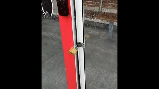 Kadrlardan aydın olur ki, dayanacağın qapısı xüsusi giriş sistemi ilə yanaşı, əlavə olaraq asma qıfılla bağlanıb. Bu isə xüsusilə əlverişsiz hava şəraitində sərnişinlərin rahatlığını məhdudlaşdırıb.
