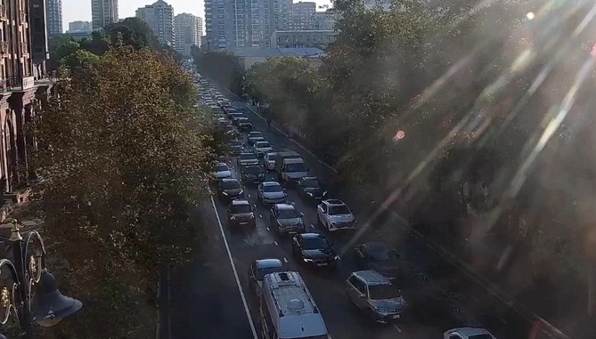 12. Ziya Bünyadov prospekti, Müzəffər Nərimanov küçəsi ilə kəsişmədən "20 Yanvar" metro stansiyası istiqamətində sıxlıq müşahidə olunur.